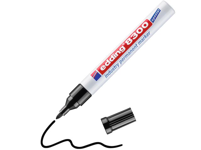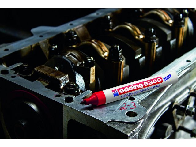 Märkpennan Edding 8300 för industrin innehåller ett förstklassigt, permanent bläck och kan användas för att skriva även på oljiga och dammiga ytor. Den här märkpennan för industrin innehåller ett permanent bläck med utmärkt täckning som är ljus- och vattenbeständigt när det torkat, vilket gör att den har många användningsområden. Märkpennan innehåller ett täckande bläck och kan användas på dammiga och oljiga ytor. Märkpennan Edding 8300 för industrin har en spets som ger 1,5