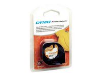 Organisera dina skrivpapper, filer och dokument med dessa hållbara etiketter från Dymo. Den slitstarka designen kan torkas av och är enkelt att fästa. Kassetten DYMO® LetraTAGT på 12 mm matar ut en hållbar och slitstark plasttejp med svart text på vit botten som kan strykas på jeans, tröjor och mer för etiketter som håller länge. LetraTAGT-tejp med text som har skrivits ut med termisk överföringsteknik