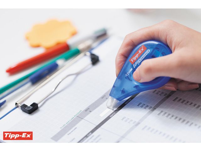 Den är luktfri och enkel att använda för omedelbar, ren och exakt korrigering. Den torra korrigeringstejpen passar hektiska arbetsmiljöer för att täcka handskrivna eller maskinskrivna brev, ord eller meningar. Den kan enkelt appliceras på släta ytor och gör att du kan skriva om direkt. Korrigeringsrollern är tillverkad av slitstark polyesterfilm och gör att du slipper kladd. Tack vare det genomskinliga plasthöljet ser du hur mycket roller som kvarstår. För din bekvämlighet finns den här produkten i storpack.