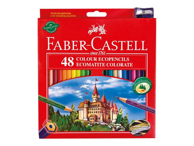 Färgpennorna Faber-Castell Castle har en klassisk sexkantig form och brytsäkra stift i en mängd snygga färger. Färgpennorna Faber-Castell Castle gör det enkelt och roligt att rita och färglägga. Dessa klassiska sexkantiga pennor finns i en mängd olika levande färger och deras stift är brytsäkra tack vare en speciell sammanlänkningsprocess med trä. Mer än 95 % av det trä som används för att tillverka de här förstklassiga pennorna kommer från FSC®-certifierade och hållbara källor, vilket gör dem till ett val som är mycket miljövänligare.