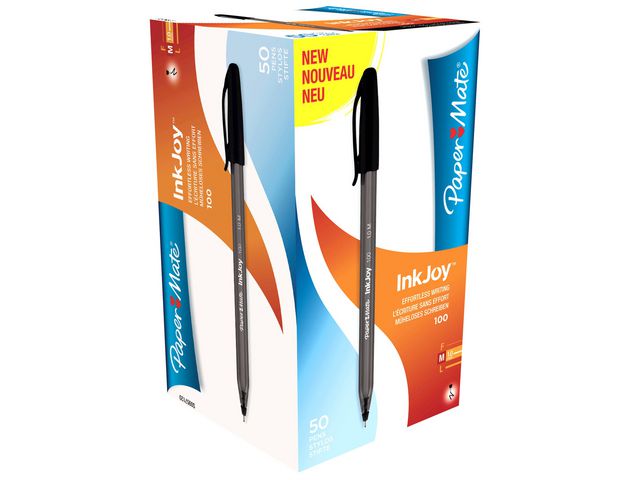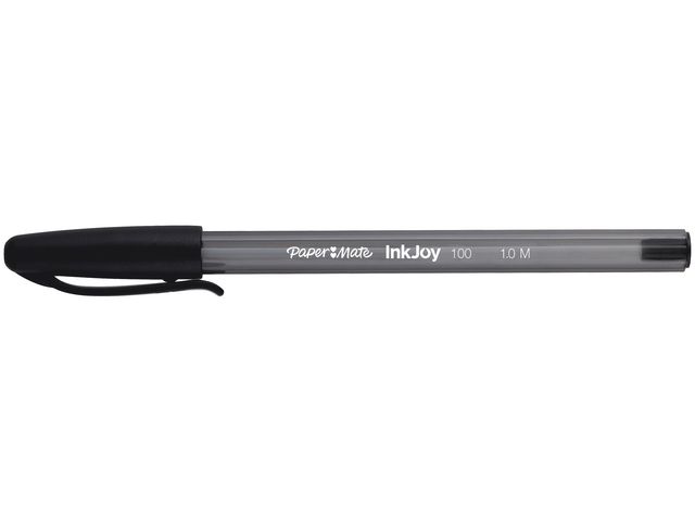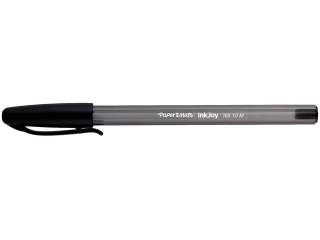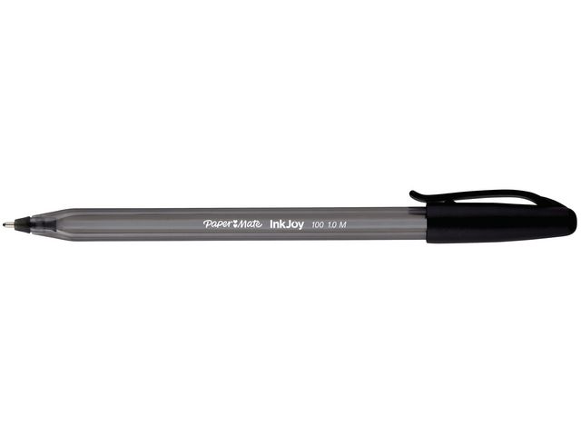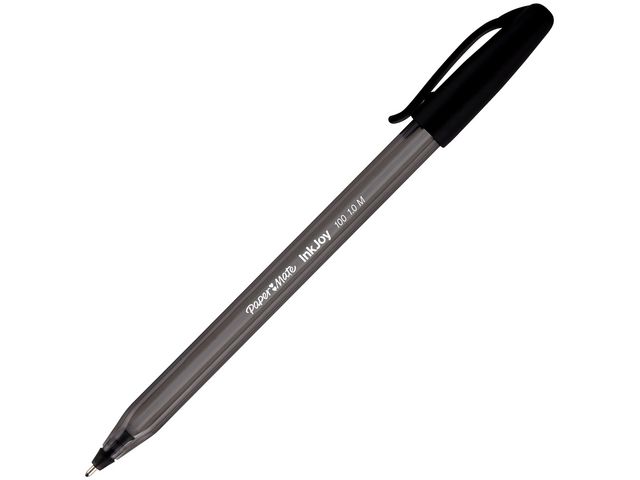 Paper Mate® InkJoyT 100-kulspetspennans triangulära design gör den bekväm och kontrollerad att skriva med. Denna korkförsedda kulspetspenna har en design som framhäver både form och funktion. Medan den transparenta pennkroppen och den vita påfyllningen ger pennan ett slimmat, modernt och fräscht utseende ger dess triangulära form dig komfort och kontroll när du skriver. Den stora spetsen på 1,0 mm tillsammans med det revolutionerande InkJoyT-skrivsystemet ger mjuka linjer för klar och tydlig skrift. Du kan också ha denna Paper Mate®-penna nära till hands genom att fästa den praktiska fickklämman på mappar, anteckningsböcker, fickor och mycket mer.