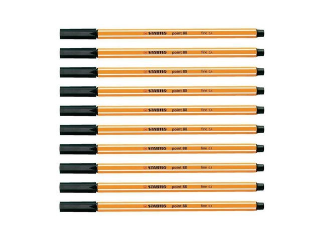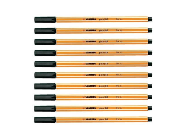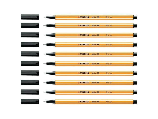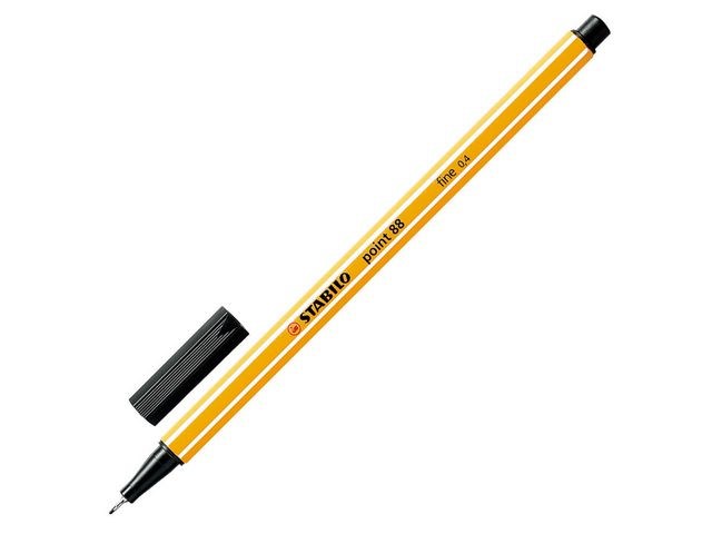 Välkända STABILO® point 88® är idealisk för att skriva, rita och skissa. Den har ett vattenbaserat bläck med starka färger som klarar sig länge utan att torka även om den inte har någon kork. STABILO® point 88® med tunn spets är en penna som utformats för lång hållbarhet och passar utmärkt för skol- och proffsbruk eftersom den metallförstärkta spetsen möjliggör detaljerat arbete som att rita diagram eller skisser och tekniska ritningar. Pennans tunna metallspets passar utmärkt för användning med mallar och linjaler. Pennan har en linjebredd på 0,4 mm, en sexkantig randig design och en ventilerad säkerhetskork. Pennan har dessutom ett luktfritt vattenbaserat bläck så att den kan ligga utan kork i upp till 24 timmar utan att torka. Finelinerpennan STABILO® point 88® finns i blandade klara färger och är ett populärt val bland konstnärer och barn tack vare de tydliga pigmenterade linjerna.