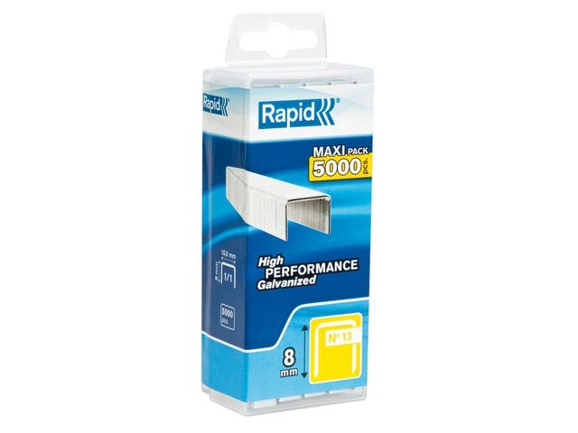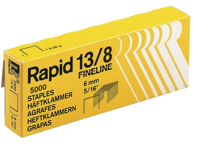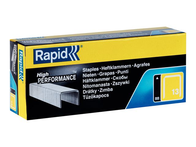 Rapid® Nr. 13 High PerformanceT¿ fintrådiga klamrar har precisionsskurna ben som enkelt kan tränga igenom textilfibrer. Rapid® Nr. 13 High Performance fintrådiga klamrar är tillverkade av galvaniserad ståltråd, vilket skyddar dem mot rostangrepp. Deras precisionsskurna ben tränger enkelt igenom tyger, etiketter och annat material. Dessa kraftiga klamrar är diskreta och kan hålla samman tyg och annat material. De kan även användas för märkning eller sätta upp affischer på ett hårt underlag.