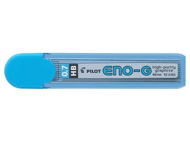 Pilots Eno-G refillstift är extra starka polymerstift för mekaniska stiftpennor. Pilots HB Eno-G refillstift på 0,7 mm är mycket lätta att använda och gör påfyllningen enkel. Det är lätt att öppna den automatiska stiftpennan och skjuta in stiftet. HB-stiftet ger linjer med medeldensitet och är perfekt för daglig redovisning och allmänna skrivuppgifter. Spetsen på 0,7 mm gör det här stiftet perfekt för uppgifter som kräver breda och framträdande linjer och där texten behöver sticka ut. Det här stiftet har tagits fram specifikt för att minska risken för att brytas, vilket ger besparingar när det gäller avfall och kostnader.