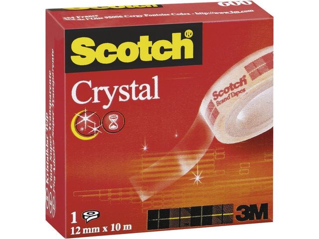 Den här blanka Scotch®-tejpen är mycket pålitlig och stark och har genomskinliga egenskaper som gör den svår att se på paket eller papper. Scotch® Crystal tejp har många användningsområden, t.ex. laga sönderrivet papper eller fästa ihop objekt för att skapa hantverk. Polystyrenhållaren är stark, tålig och lätt, vilket gör tejpen lätt att bära med sig och förvara. Dessutom är den beständig mot åldrande och gulnande under lång tid.