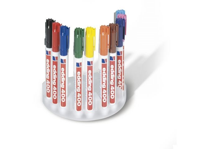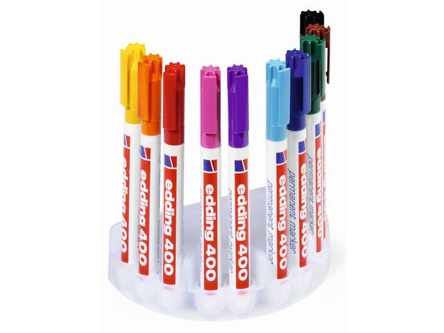 Den permanenta märkpennan Edding 400 är utformad för mångsidig användning och kan användas på nästan alla slags ytor. Den här permanenta märkpennan innehåller bläck som torkar snabbt och är smetfritt och vattenbeständigt, vilket hjälper dig att skriva tydligt och fläckfritt. Den är speciellt utformad för mångsidig användning och kan användas i flera olika sammanhang. Den permanenta märkpennan Edding 400 har en tunn spets som ger 1 mm linjebredd och den passar utmärkt när du vill ha mer precision och noggrannhet. Det ger jämn skrift på nästan alla slags ytor, bland annat plast, metall, glas och trä. Märkpennan är tunn och lätt, vilket gör den extremt bekväm och enkel att använda. Den levereras med kork och fickklämma.