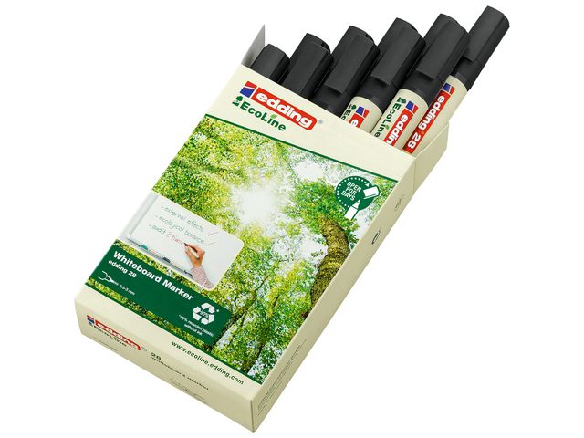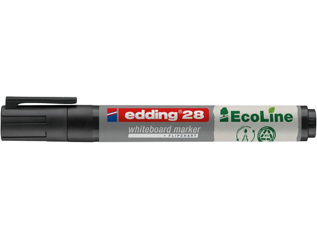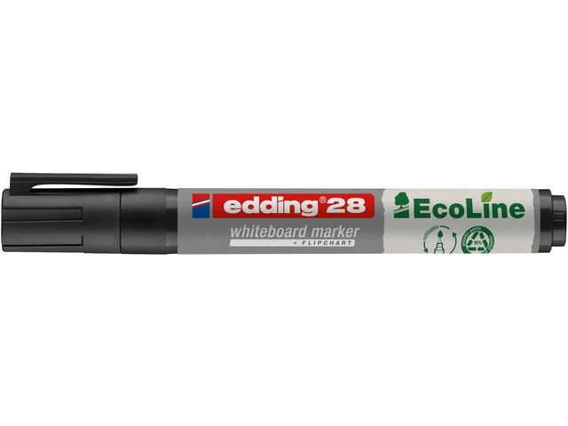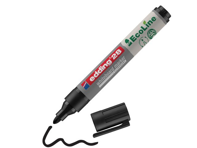 Whiteboardpennan Edding 28 EcoLine fungerar på nästan alla icke-porösa ytor och består av plast som är tillverkad av 90 % återvunnet material. Den här märkpennan är speciellt utformad för användning på whiteboardtavlor och nästan alla icke-porösa ytor, till exempel emalj, glas och melamin. Det snabbtorkande och ljusbeständiga bläcket kan enkelt torkas bort. Märkpennan innehåller ett torksäkert bläck som inte torkar även om korken är av under flera veckor. Whiteboardpennan Edding 28 EcoLine har en spets med 1,5