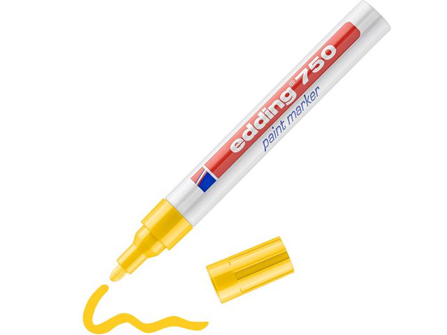 Märkpennan Edding 750 ger en täckande lackfinish och jämn märkning på många ytor. Den här märkpennan innehåller permanent pigmentbläck som tål vatten och slitage, vilket gör den perfekt när bläcket kommer att utsättas för vatten. Bläcket tål även temperaturer upp till 400 °C. Märkpennan Edding 750 har en spets med 2
