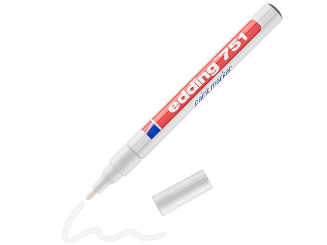 Märkpennan Edding 751 har en täckande lackfinish och ger ett jämnt resultat på många olika ytor. Den här märkpennan innehåller permanent pigmentbläck som tål vatten och slitage, vilket gör den perfekt när bläcket kommer att utsättas för vatten. Bläcket tål även temperaturer upp till 400 °C. Märkpennan Edding 751 har en tunn spets med 1