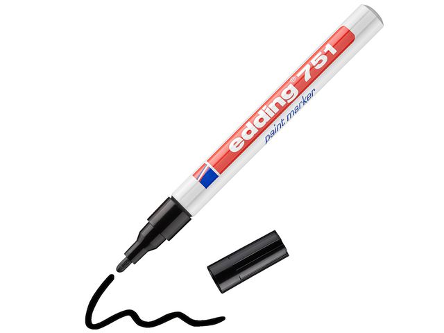 Märkpennan Edding 751 har en täckande lackfinish och ger ett jämnt resultat på många olika ytor. Den här märkpennan innehåller permanent pigmentbläck som tål vatten och slitage, vilket gör den perfekt när bläcket kommer att utsättas för vatten. Bläcket tål även temperaturer upp till 400 °C. Märkpennan Edding 751 har en tunn spets med 1