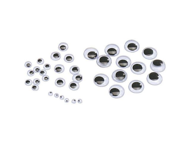 Roliga plastögon som ger liv till dina kreationer. Svartvita ögon med rörliga pupiller i fyra olika storlekar. Limmas enkelt fast.
