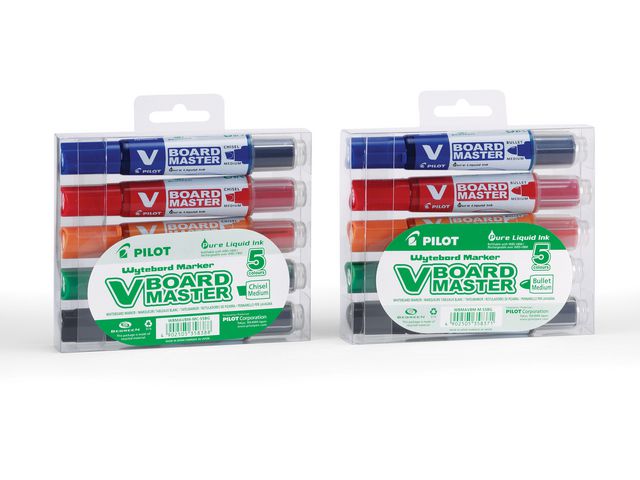 Pilot BegreeN V-Board Master whiteboardpenna med jämnt bläckflöde och använder ljuståligt flytande bläck i ljusa och starka färger. Whiteboardpennan Begreen V-Board Master använder flytande alkoholbaserat bläck i klart lysande färger, vilket ger en skrift som verkligen sticker ut. Det avancerade bläckleveranssystemet med två slangar gör att du kan du börja skriva direkt med djupa, heltäckande färger utan att behöva skaka pennan. För att du ska slippa få slut på bläck har märkpennan ett genomskinligt fönster där du kan se hur mycket bläck som finns kvar och enkelt fylla på med Pilots refillpatroner. Pennan ingår i Begreen-kollektionen och är därför det perfekta miljövalet, eftersom den till 91 % är gjord av återvunnet material. Den är xylenfri och avger inga starka dofter. Denna märkpenna är avsedd för enkel och noggrann skrift i klara, spännande färger som kan torkas bort när de torkat.