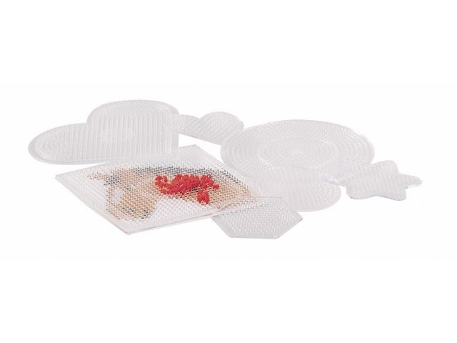 Av transparent styrenplast, med piggar. MÅTT: Plattan är totalt 10 cm.