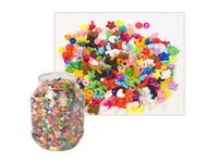 Av styrenplast. Blandade färger och former. Levereras i burk. Ytterdiameter 9 - 18 mm. Håldiameter 1,0-4,0 mm.