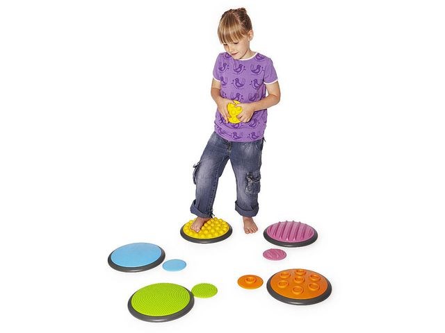 Balansplattor som tränas barnens känslighet i fötter och händer och hjälper till att utveckla förmågan att verbalt uttrycka sinnesuttryck. Balansplattorna innehåller 5 olika taktila strukturer i olika färger. Balansplattorna ge... Läs mer